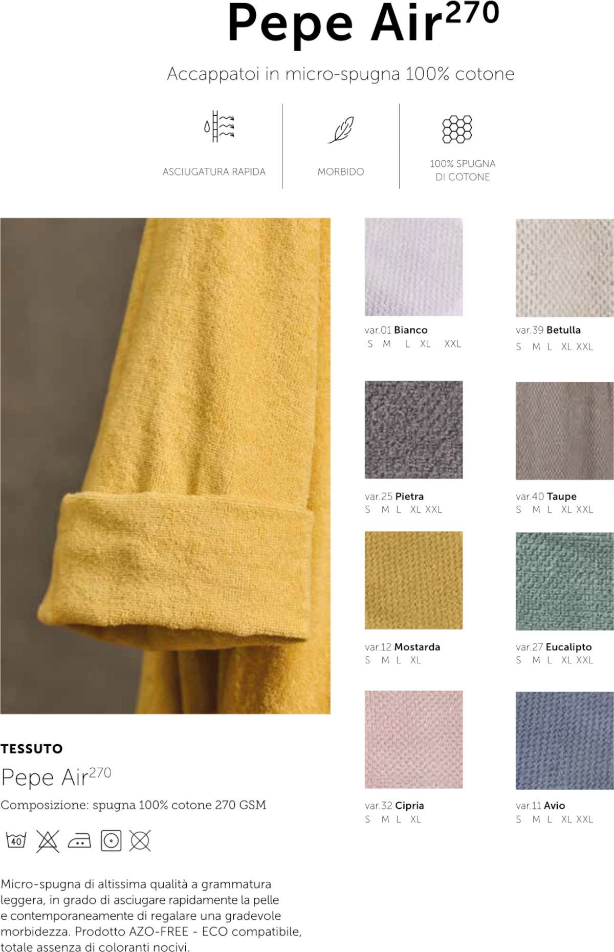 Aggiungi alla Wishlist Disponibile Novità Accappatoio Maison Sucrée Accappatoio Pepe Air var.39 Betulla Taglia M Spugna 100% Cotone Prezzo 50,00 € Acquista