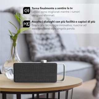 Ideale anche come diffusore TV per il campeggio, le case di vacanza o le imbarcazioni. Anche in viaggio è possibile godere di dialoghi chiari al normale volume del televisore.