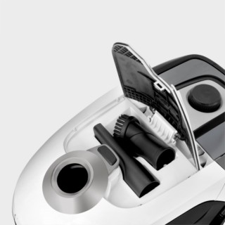 La caratteristica più efficace dell'aspirapolvere VC 2 di Kärcher è la praticità del sistema filtrante: smaltire il sacchetto quando è pieno è molto più igienico e facile che svuotare un serbatoio, perché non si entra in contatto con lo sporco. Questo modello è pensato per gli appartamenti e le case non troppo grandi, pulisce a fondo pavimenti e tappeti e grazie all'accessoristica composta da varie bocchette arriva nelle fessure, sui mobili più delicati e sui mobili imbottiti. Il filtro HEPA, di cui è fornito, trattiene tutti gli allergeni presenti nell'aria e rende l'ambiente abitabile per i soggetti allergici. Il vano anteriore porta accessori, la regolazione di potenza sulla macchina e la posizione di parking completano le caratteristiche di questo prodotto.