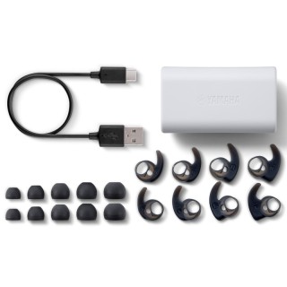 Auricolari true wireless Sport, con Bluetooth 5.2, Listening Care. Assistente vocale (Google/Siri), Ambient Sound, Impermeabili IPX7, custodia con indicatori led di ricarica, codec Qualcomm aptX di alta qualità, App Yamaha Heaphone Control. Autonomia: fino a 34 ore di durata totale della batteria (9 h + 25 h)