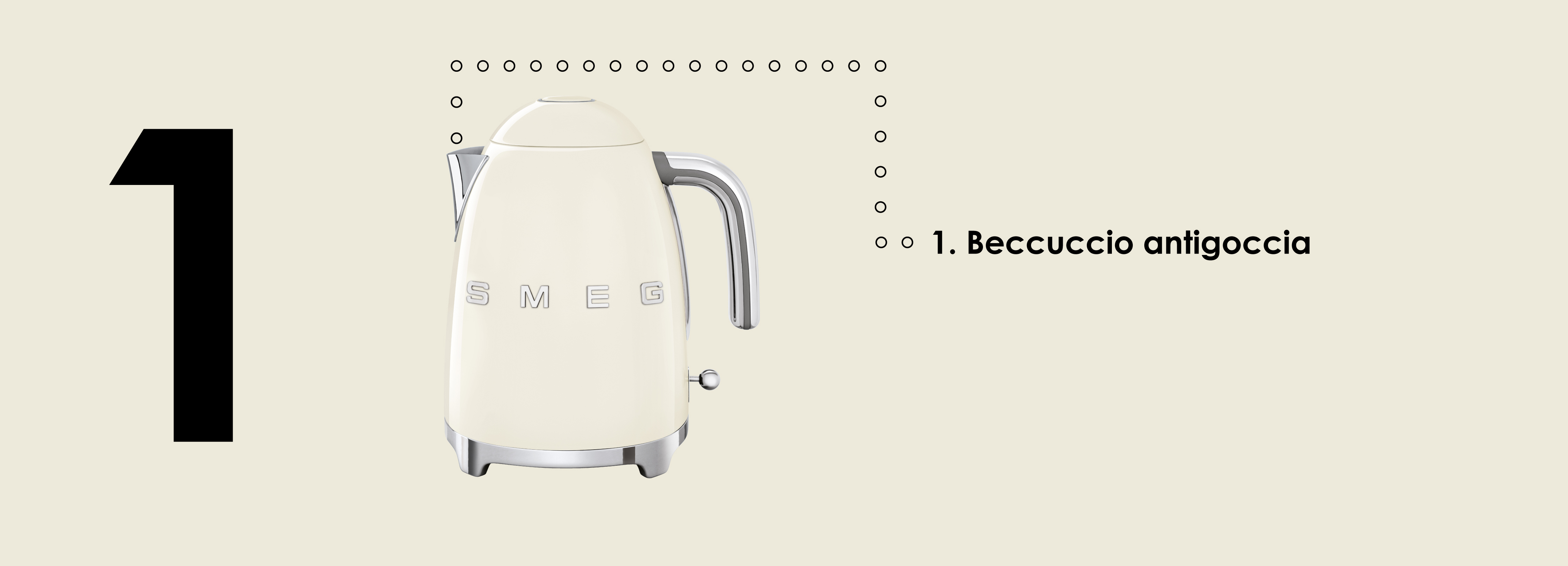 Smeg KLF03CREU Panna Lucido 50's Style Bollitore 1,7 litri 7 Tazze Soft Opening AutoOFF 100°C