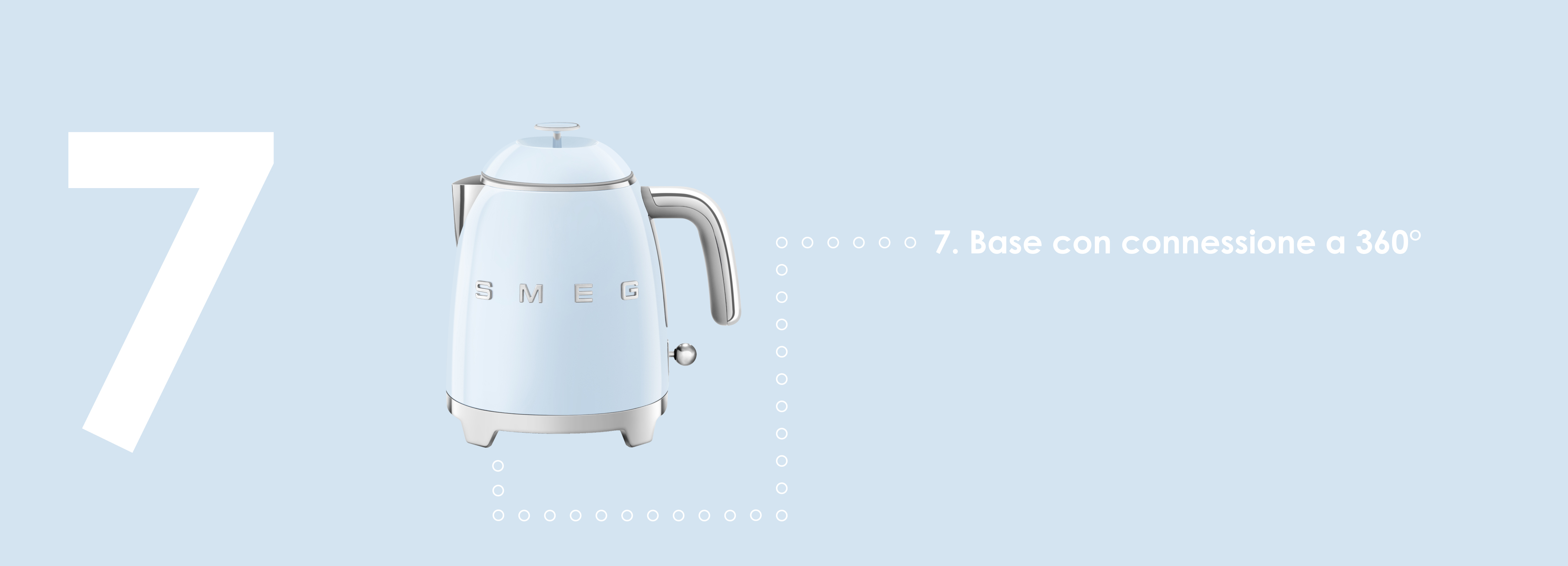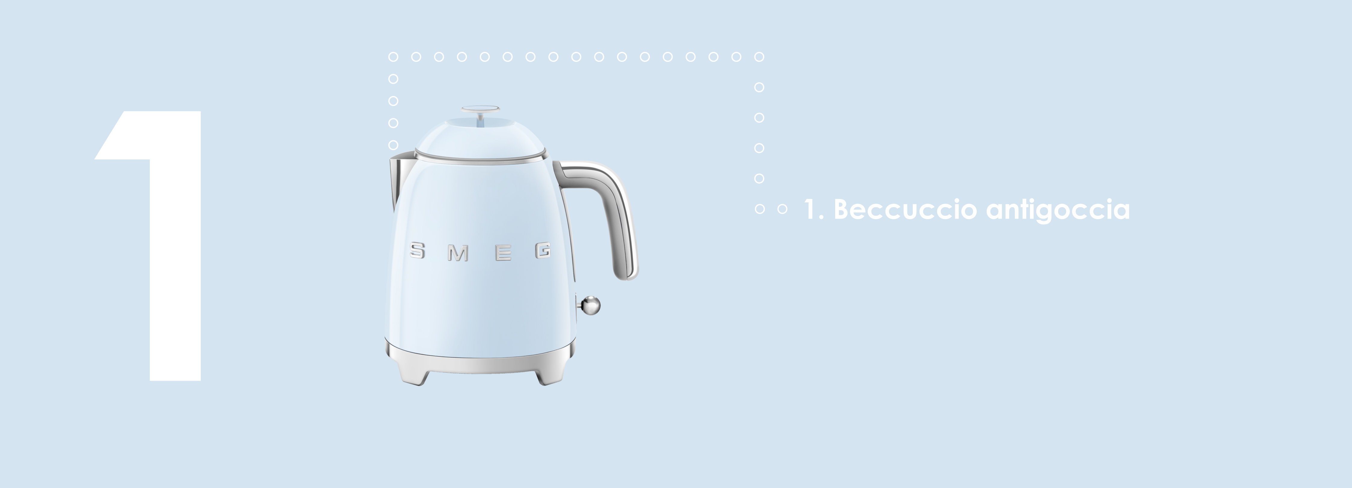 Grazioso e colorato, il mini bollitore Smeg KLF05 della linea 50 Style è un oggetto iconico dall’inconfondibile design che grazie alle dimensioni contenute, è perfetto per decorare ogni ambiente, anche quelli con spazi ridotti.