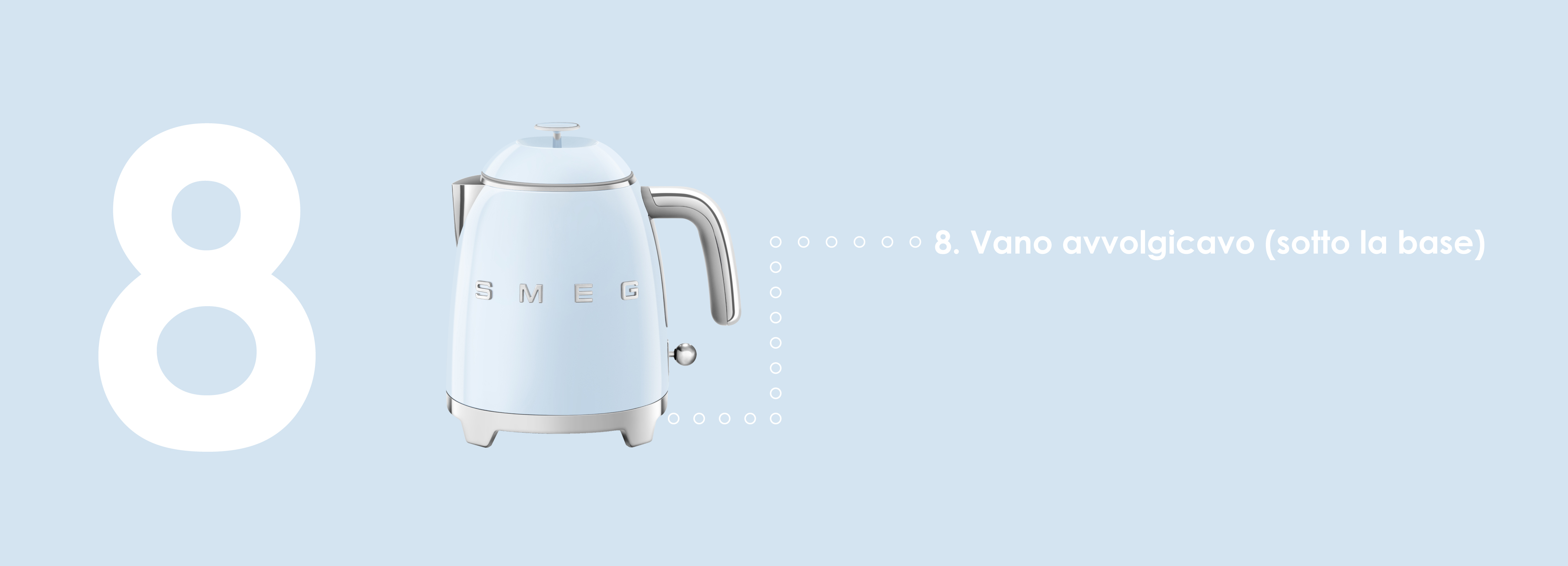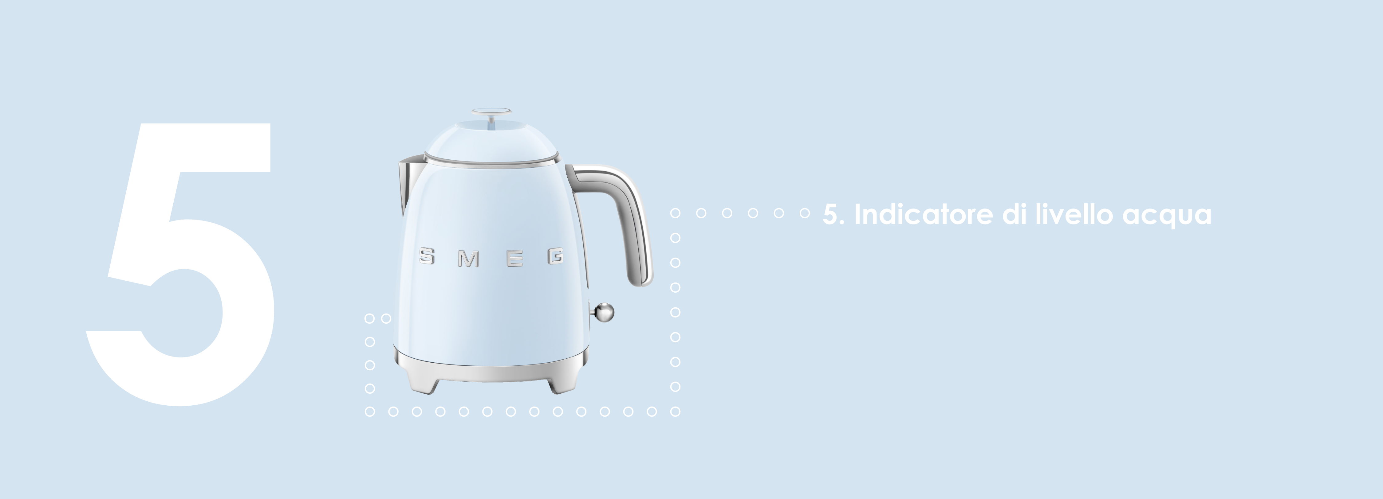 Smeg KLF05PBEU Azzurro Lucido 50's Style Mini Bollitore 0,8 litri 3 Tazze AutoOFF 100°C
