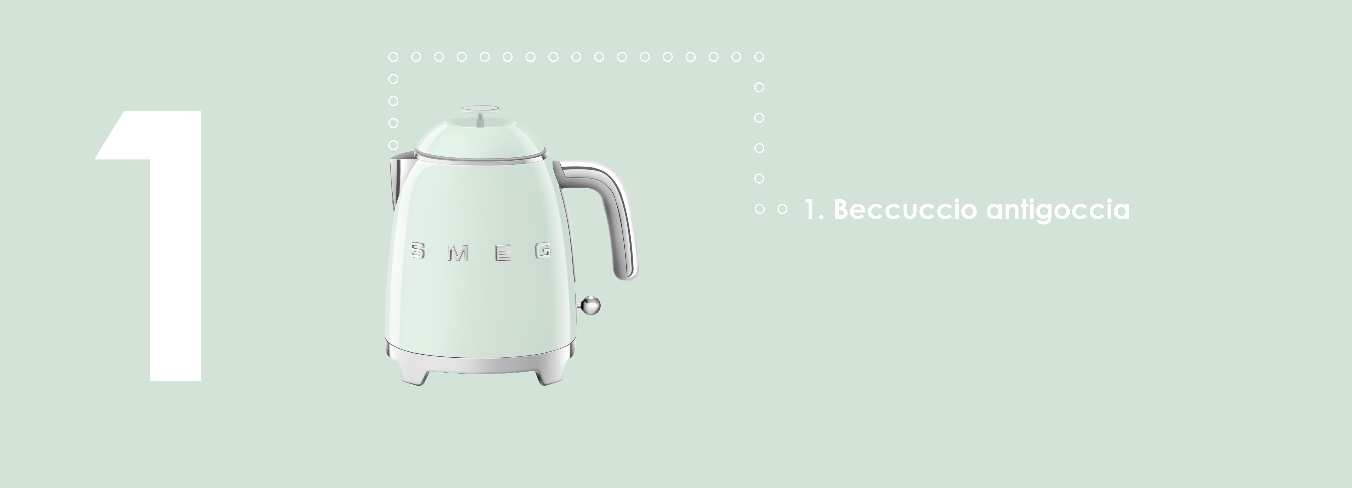 Grazioso e colorato, il mini bollitore Smeg KLF05 della linea 50 Style è un oggetto iconico dall’inconfondibile design che grazie alle dimensioni contenute, è perfetto per decorare ogni ambiente, anche quelli con spazi ridotti.