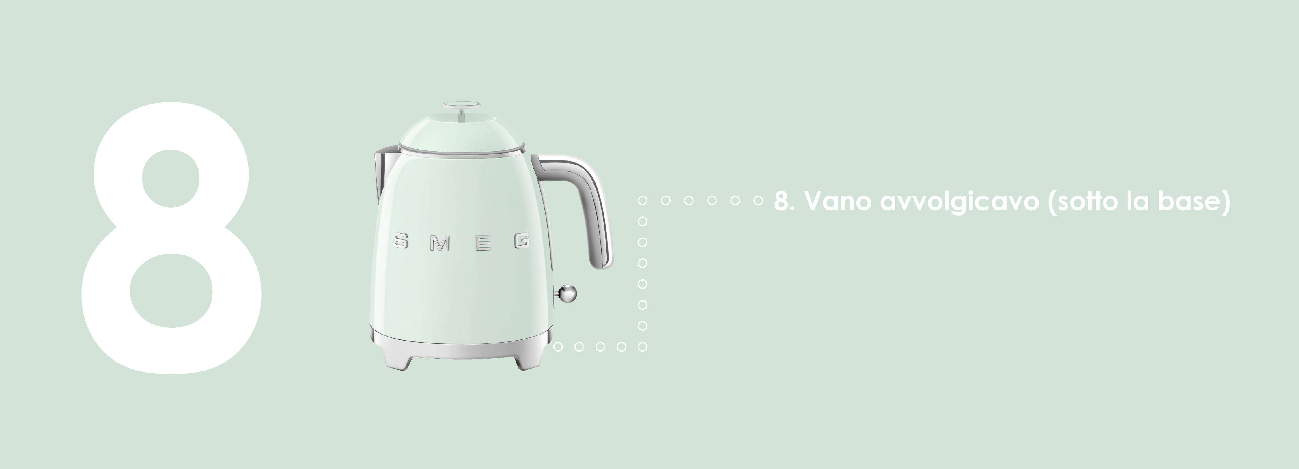 Smeg KLF05PGEU Verde Pastello Lucido 50's Style Mini Bollitore 0,8 litri 3 Tazze AutoOFF 100°C