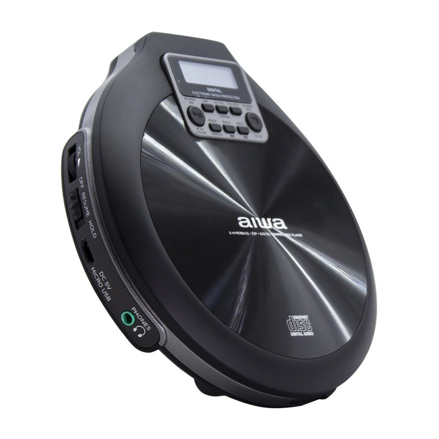 Aiwa PCD-810BK Black Lettore CD MP3 Portatile ESP 120sec Pile Ricaricabili 2xAA MicroUSB Custodia