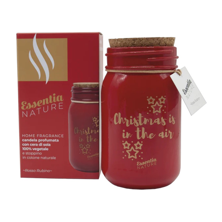 Essentia Candela Profumata in Giara Rosso Rubino 60 ore Cera di Soia 100% Vegetale
