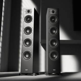 Coppia Casse Acustiche da Pavimento a 3 vie bass reflex: 3 woofer da 150 mm con membrana Curv, 1 mid-range 150 mm con membrana in Curv, 1 tweeter da 26 mm. Amplificazione suggerita: 30 - 160 watt, Impedenza 4 - 8 ohm, Risposta in frequenza: 35 - 23000 Hz, Sensibilità: 93 dB (2.83V/1m), 300/3500 Hz crossover, Dimensioni (AxLxP) 957 x 220 x 335 mm (piedi inclusi), Peso cadauna 18 kg