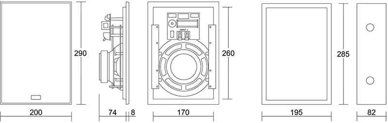 Coppia Casse Acustiche da Incasso a 2 vie: 1 woofer da 160 mm con cono in polipropilene rinforzato mica e rifasatore centrale ed un tweeter con cupola da 26 mm in leggerissima seta trattata. Amplificazione suggerita: 30 - 120 watt, Impedenza 4 - 8 ohm, Risposta in frequenza: 65 - 22000 Hz, Sensibilità: 90 dB (2.83V/1m), 2500 Hz crossover, Dimensioni (LxAxP) 200 x 290 x 82 mm, Peso 2.4 kg, Dimensioni Box Legno (LxAxP) 195 x 285 x 82 mm