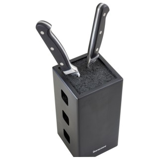 Ceppo portacoltelli per tutti i tipi di coltelli, con una lunghezza massima di 25 cm. I suoi fili di plastica lo rendono flessibile: i coltelli possono essere inseriti in qualsiasi punto del ceppo. Lavabile lavastoviglie, tuttavia si consiglia il lavaggio a mano. Legno e Plastica. I coltelli non sono compresi. Dimensioni (AxLxP) 24,2 x 11,4 x 11,4 cm