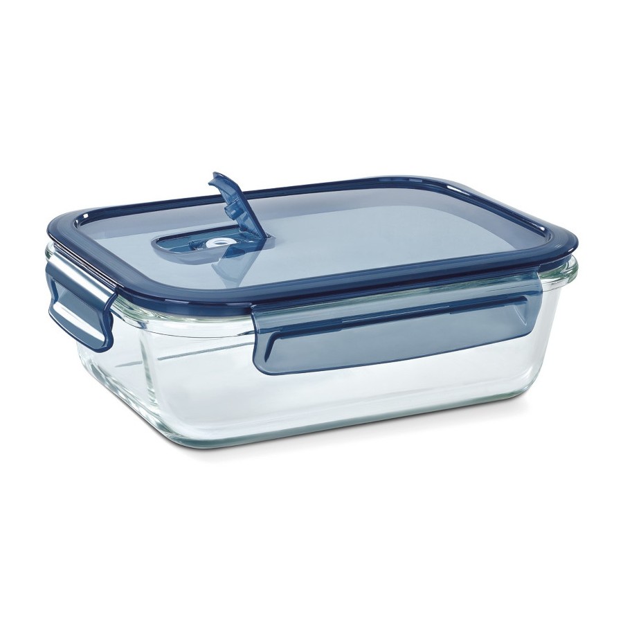 Contenitore in Vetro borosilicato con Coperchio. Ermetico. Facile da riporre. Impilabile. Valvola di sfiato. Guarnizione in silicone. Utilizzabile in Forno, Microonde, Frigorifero, Freezer. Temperatura: Min -20° Max 250°. Capacità: 1520 ml 4/6 Porzioni.