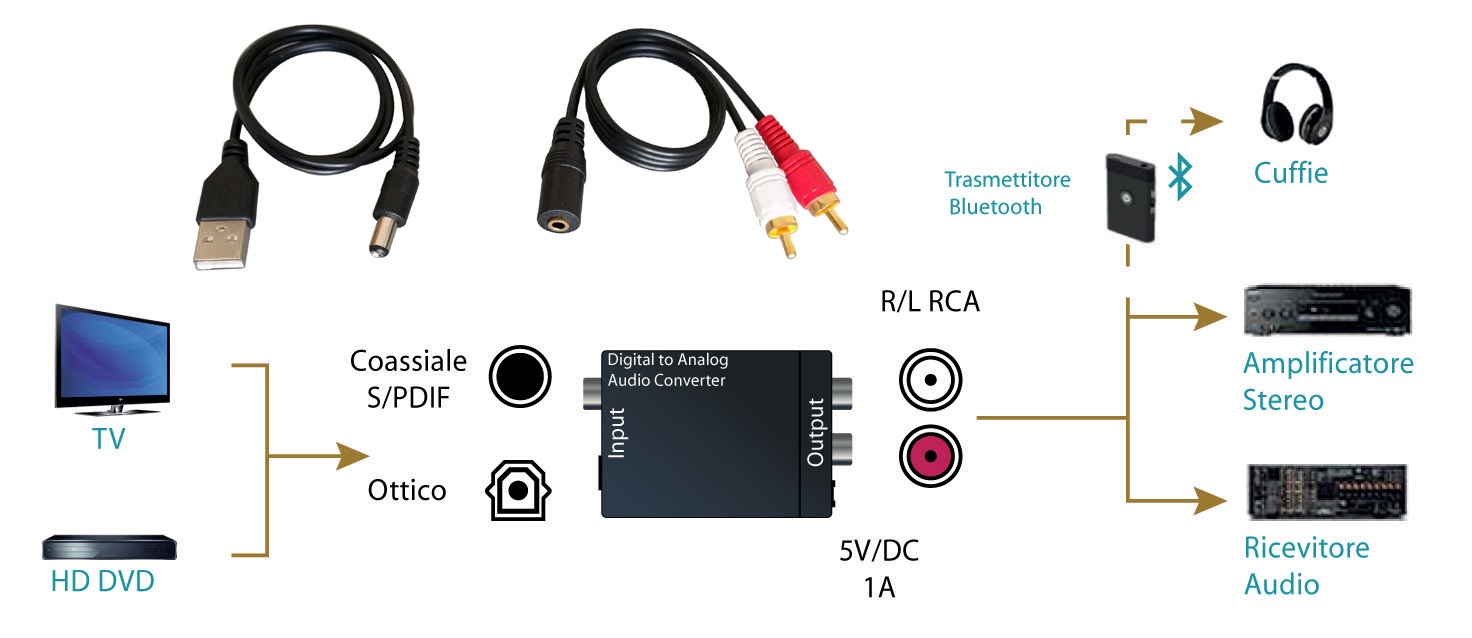 Converte l'audio da coassiale e Toslink ad RCA analogico