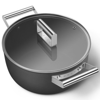 Smeg CKFC2411BLM Nero 50's Style Cookware Casseruola 24cm 4,6L Antiaderente Coperchio