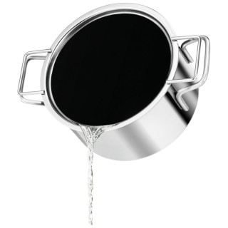 Ora è facile scolare l'acqua dalla pasta e dalle patate. Il coperchio drenante in acciaio inossidabile incorpora un setaccio con coperchio in silicone. Quando si capovolge la casseruola, il coperchio in silicone si stacca automaticamente dal coperchio, consentendo all'acqua di cottura di defluire attraverso il setaccio.