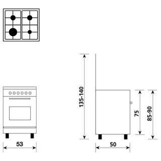 Cucina Serie Alpha 53 x 50 Piano a Gas Forno Elettrico Multifunzione