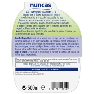 Nuncas Inox Detergente Lucidante 500ml Rimuove Efficacemente Impronte e Macchie