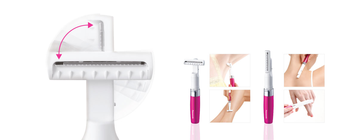 Rasoio da Donna con Lama a doppia posizione, Tecnologia di rasatura a secco, Facile da portare con te grazie al design compatto, Lavabile/impermeabile