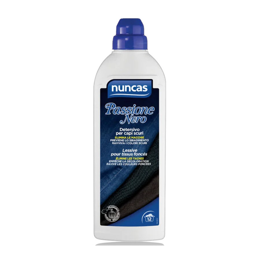Nuncas Passione Nero 750ml Detersivo Liquido a Mano e Lavatrice per Tessuti Neri 12 Lavaggi