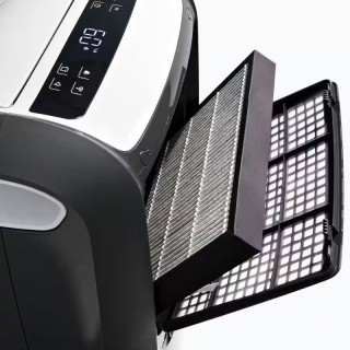 Deumidificatore e Purificatore: Rimuove fino a 21 litri di umidità in eccesso in 24 ore, tanica 5l, scarico continuo, comandi elettronici, funzione laundry, Sistema di filtrazione dell'aria 4 fasi: filtro EPA 12 con carbone attivo, filtro Bio Silver e filtro anti-polvere. Certificato "Asthma e Allergy Friendly". Connettibilità Google Assistant e Amazon Alexa, app dedicata per impostare le funzione speciali: filtrazione aria, real feel, antimuffa e laundry. Timer 12 ore. Dimensioni (AxLxP) 600 x 383 x 257 mm