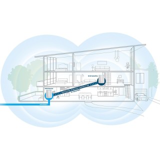 Sistema WiFi Orbi Kit: Router RBR50 + Satellite RBS50. WiFi Tri-Band, Ottieni una velocità di Internet oltre i 100 Mbps su una superficie di 300 metri quadrati. Nome WiFi unico. Configurazione semplificata con l'app Orbi. Controllo vocale compatibile con Amazon Alexa e Google Assistant