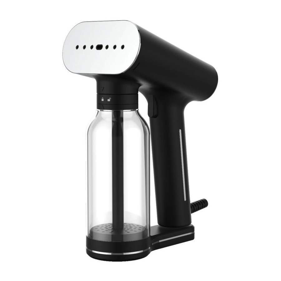 Steamer Portatile. Getto di vapore 33 g/min. Potenza 2000 W. Regolatore di potenza Eco e Max. Capacità del serbatoio 400ml. Tempo di riscaldamento: 30 sec. Autonomia 27 minuti. Può essere utilizzato in verticale o in orizzontale. Disinfetta ed elimina gli odori.