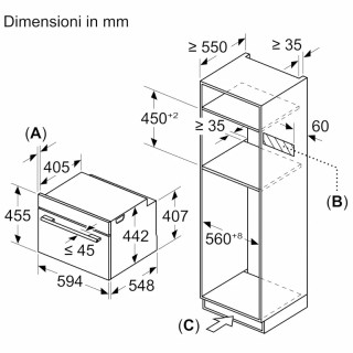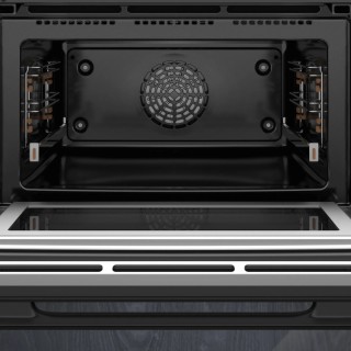 Forno Incasso Compatto H45 Combinato Multifunzione con Microonde. Aria calda 4D: una distribuzione uniforme del calore su tutti i livelli per risultati eccellenti. Temperatura da 30 °C a 300 °C. Programmi automatici gestiti con cookControl Pro. bakingSensor / roastingSensor Plus: sensori intelligenti per cotture impeccabili. fastPreheat riscalda rapidamente il forno. coolStart per accelerare la cottura dei cibi congelati. Porta a ribalta con sistema di chiusura ammortizzata softClose. Pulizia Pirolitica. Display Full Touch a Colori 6,8". Guida telescopica resistente alla pirolisi. HomeConnect. StudioLine. Dimensioni (AxLxP) del vano cottura: 23,7 x 48 x 39,2 cm / del forno 45,5 x 59,4 x 54,8 cm