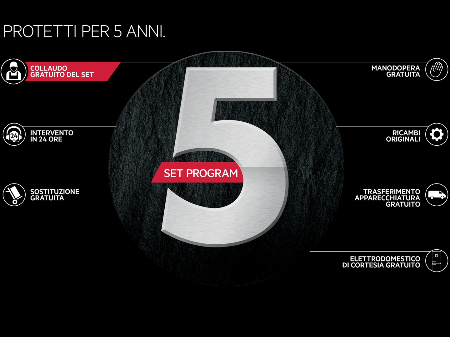 Acquista un set di 3 elettrodomestici della linea Premier Line e usufruisci di 5 anni* di garanzia gratuiti.