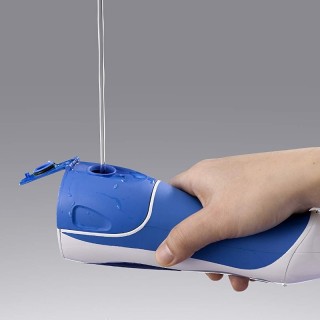 Idropulsore per doccia orale senza fili, ricaricabile, Pressione dell'acqua 590 kPa in 3 fasi. 1.400 impulsi al minuto. Serbatoio incorporato. Modalità getto: un potente getto d'acqua ad alta pressione e pulsante viene diretto tra i denti. Modalità getto e aria: getti pulsanti di acqua mescolata ad aria vengono emessi a intermittenza per pulire i solchi parodontali e stimolare le gengive.