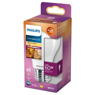 Philips LED Goccia Vetro E27 5,9W 230V 806lm 2700K Dimmerabile Equivalente 60W