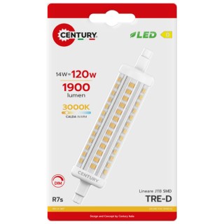 Century TRD-1411830BL Lineare 118mm R7s 14W TRE-D Led 1900lm 3000K 230V Equivalente 120w Dimmerabile