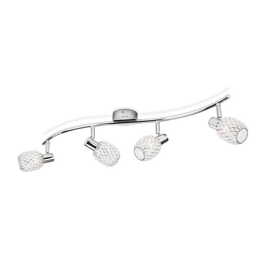 Crea giochi di luce semplicemente ruotando o inclinando i 4 spot in metallo e vetro della lampada.