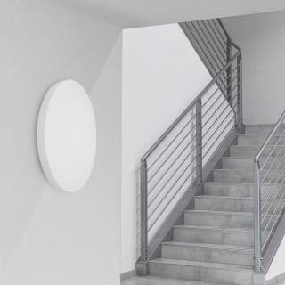 Plafoniera LED dal design sottile, adatta a tutti gli ambienti interni. Diffusore in PMMA di elevata qualità garantisce un flusso luminoso brillante ed uniforme. Diametro 39cm. 32W 3380lm 3000K.
