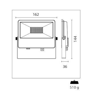 Proiettore LED in alluminio pressofuso. 30 watt. 3660 lumen. Schermo in vetro smerigliato. Valvola anticondensa. Resistente ad acqua e polvere. Regolazione della tonalità della luce 3000K - 4000K - 6500K. Adatto per interni ed esterni. Grado protezione IP65.