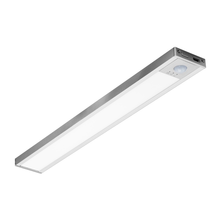 Reglette sottopensile LED ricaricabile. Lunghezza 30 cm. 2,5 W 170lm 4000K. Dimmerabile. Sensore Movimento. Ricarica in 2 ore, Autonomia 9 ore. Cavo USB-C da 1,5 metri. Attacco magnetico o adesivo.