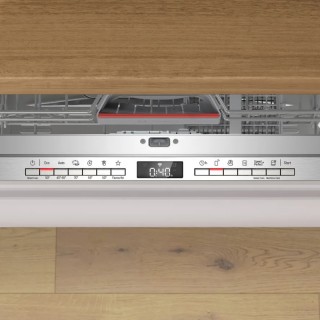 Lavastoviglie da Incasso a Scomparsa Totale, 14 coperti, 3° Cestello Extra Space per utensili e piccole stoviglie, Cestello Posate, 9 l, Silent 42 dB. 6 programmi: Eco, Auto, Intensivo, Express, Silence, Preferito. 4 funzioni speciali: Remote Start, EfficientDry, Mezzo carico, SpeedPerfect+. Silence on demand, HygienePlus attivabili con App Home Connect. Programma manutenzione. Scambiatore di calore ed apertura automatica della porta EfficientDry. Vasca Inox, AquaStop, InfoLight. Display con indicazione tempo. Partenza ritardata 1-24h. Home Connect. Classe Energetica: B. Dimensioni (AxLxP) 81,5 x 59,8 x 55 cm