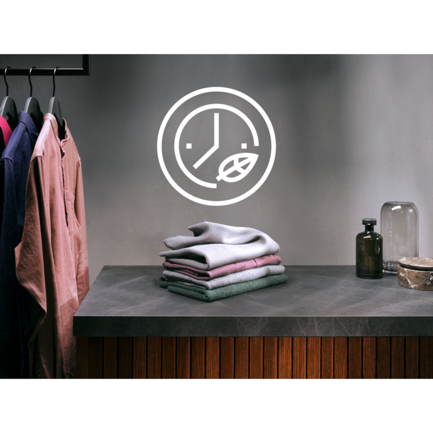 Ottieni capi perfettamente morbidi e profumati in meno tempo con l'opzione Risparmio Tempo: meno tempo per il bucato e più tempo per te.