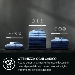 *Test interno per il consumo di tempo, acqua ed energia di un ciclo Cotone a 30°C ottimizzato con tecnologia PreciseWash per un carico di 1 kg rispetto al carico massimo.