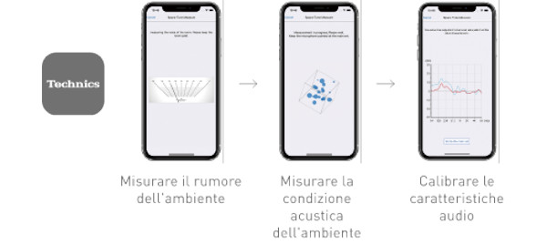 Regolazione precisa mediante l'app Technics Audio Center (con dispositivo iOS)L'app misura e compensa le caratteristiche di frequenza.