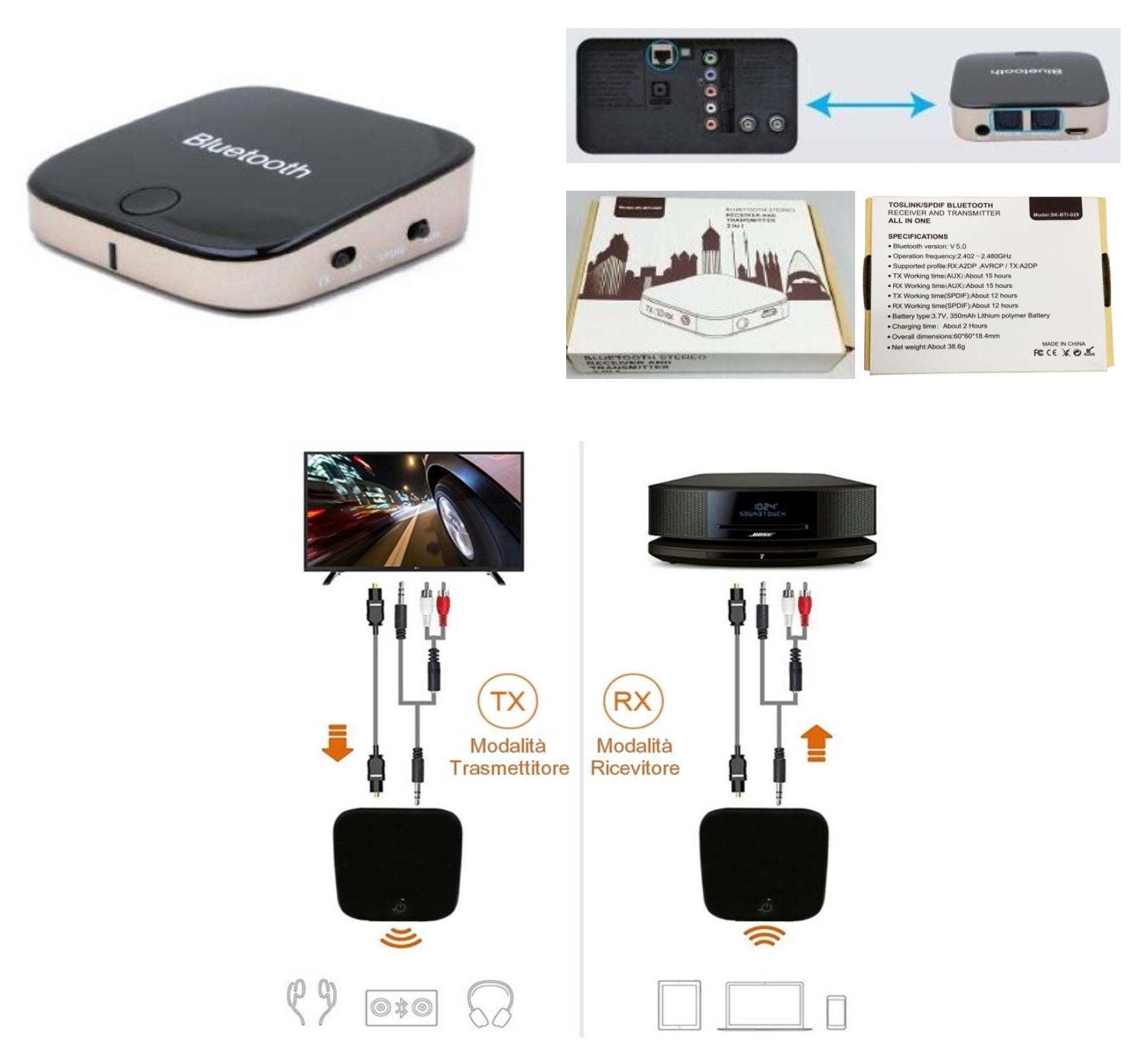 Thender SK-BTI-029 Bluetooth Ricevitore Trasmettitore Digitale Analogico Ricaricabile