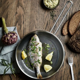 Un'indispensabile padella a tutto tondo con un rivestimento in ceramica senza precedenti, che rende questa padella eccezionalmente resistente. L'esclusivo motivo a mosaico sulla superficie è costituito da acciaio inossidabile nella parte superiore e un rivestimento in ceramica Slip-Let® nella parte inferiore ed è resistente all'uso di utensili metallici. Il rivestimento permette di ridurre la quantità di grasso e olio utilizzati, per una perfetta rosolatura e una facile pulizia. La tecnologia a triplo strato della padella garantisce una perfetta distribuzione del calore e il suo esterno durevole è resistente ai graffi e agli urti. Usa questa padella per qualsiasi cosa, dalle uova fritte agli hamburger e alle polpette di verdure. La padella è resistente al calore per l'uso in forno fino a 400 °C ed è progettata per tutte le fonti di calore, compresa l'induzione.