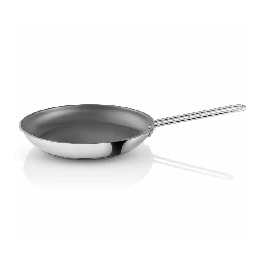 Il design rende omaggio agli iconici originali Ole Palsby/Eva Trio del 1977, che hanno resistito alla prova del tempo per decenni grazie ai loro manici freddi, ai pratici beccucci versatori, alla possibilità di impilarli e alla piena compatibilità con i coperchi e gli altri accessori della linea Eva Trio. Questa padella è adatta al forno e compatibile con tutte le fonti di calore.