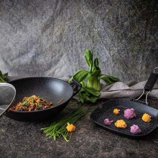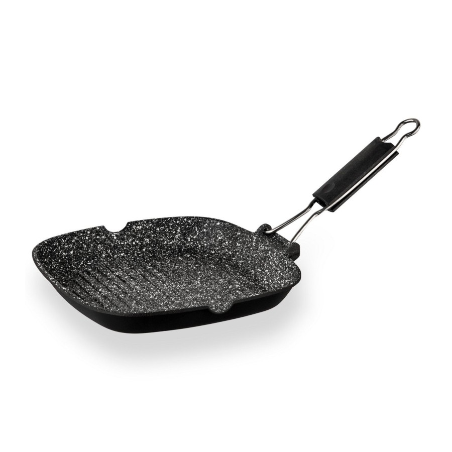 Bistecchiera 26x26cm. Alluminio pressofuso. Rivestitimento a 5 strati Antiaderente Resistente Marmotech. Per piani a Gas ed Elettrico. No induzione. Lavabile in lavastoviglie.