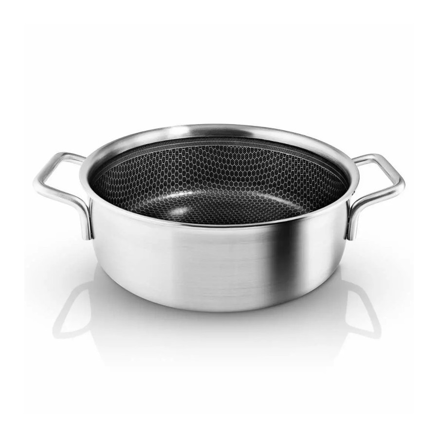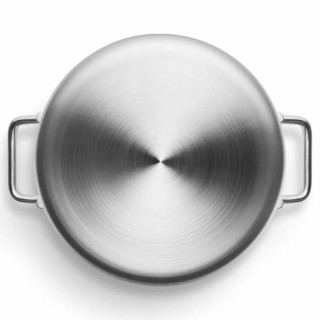 Questa pentola per sauté unisce le caratteristiche di design e la rinomata qualità di Eva Trio a miglioramenti e materiali di ultima generazione. L'interno è rivestito con un motivo accattivante in acciaio inossidabile nella parte superiore e un rivestimento antiaderente in ceramica Slip-Let® nella parte inferiore. Questa combinazione riduce il rischio che gli ingredienti si attacchino o brucino, mentre il rivestimento è così resistente che è possibile utilizzare utensili in metallo in tutta sicurezza senza il rischio di danneggiarli. Il corpo della pentola per sauté è realizzato con una combinazione di acciaio inossidabile riciclato post-consumo al 90% e alluminio riciclato post-consumo al 100%. L'esclusivo design a sandwich multistrato garantisce un riscaldamento rapido, una distribuzione uniforme del calore e un esterno robusto e resistente all'usura. La pentola per sauté è adatta al forno fino a 400 °C ed è compatibile con tutte le fonti di calore, inclusa l'induzione. È facile da pulire in lavastoviglie o con una paglietta in acciaio. Questa pentola si basa sul classico design Ole Palsby/Eva Trio del 1977, il che garantisce che offra ancora le rinomate caratteristiche Eva Trio, come i manici freddi, il beccuccio versatore, l'impilabilità e la compatibilità con i coperchi e gli altri articoli della gamma Eva Trio.
