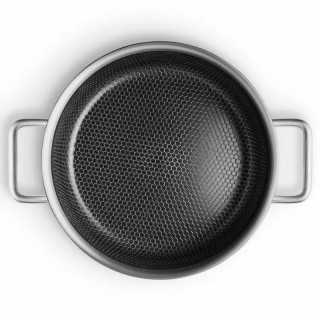Pentola per Sauté 3 Litri in acciaio inossidabile riciclato post-consumo al 90% e alluminio riciclato post-consumo al 100% con un esclusivo motivo a mosaico in ceramica Slip-Let antiaderente sulla superficie interna. È possibile utilizzare utensili in metallo senza rischio di danneggiare la superficie. Resistente al calore fino a 400 °C. La struttura a triplo strato garantisce una distribuzione uniforme del calore. Disegn by OP. Adatto per fornelli in vetroceramica, a gas, elettrici e a induzione e per forno. Diametro 24 cm. Zona di induzione 20,5 cm.