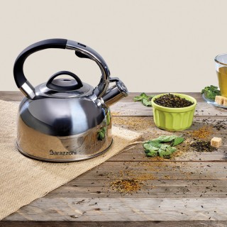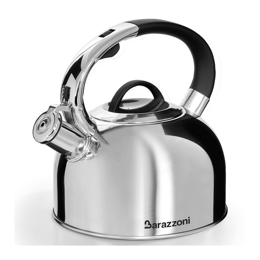 Elegante, moderno e super funzionale, il bollitore Barazzoni è realizzato in acciaio inox 18/10. Il suo comodo manico ergonomico consente di sollevarlo con facilità. Dotato di un pratico tasto per l'apertura e la chiusura del beccuccio dosatore. Il fischio integrato nel tappo avverte quando l'acqua bolle.