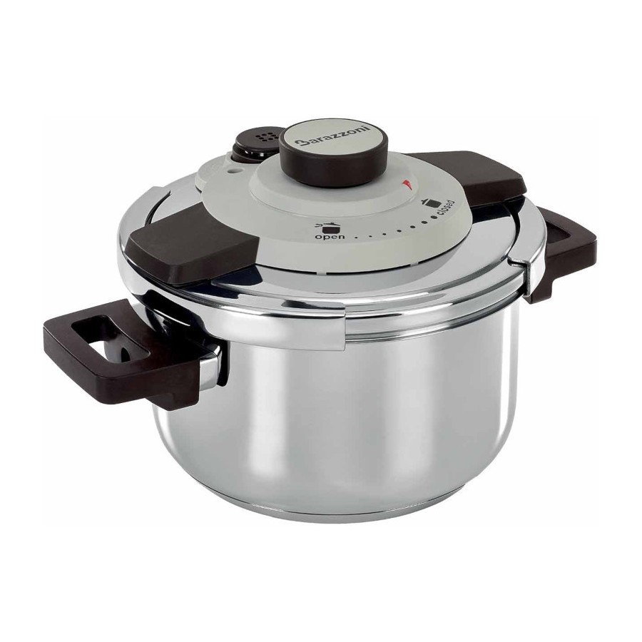 Dispositivo di cottura a 2 pressioni differenziata in base agli alimenti. Grazie al suo fondo ad alto spessore ed alla valvola Dual System consente di ridurre i tempi di cottura fino al 45% rispetto ad una pentola a pressione tradizionale. Vero plus di questa pentola a pressione è il suo meccanismo a ganascia che consente di aprire e chiudere il coperchio senza sforzo e con una sola mano, ruotando il pomolo centrale di 45°.
