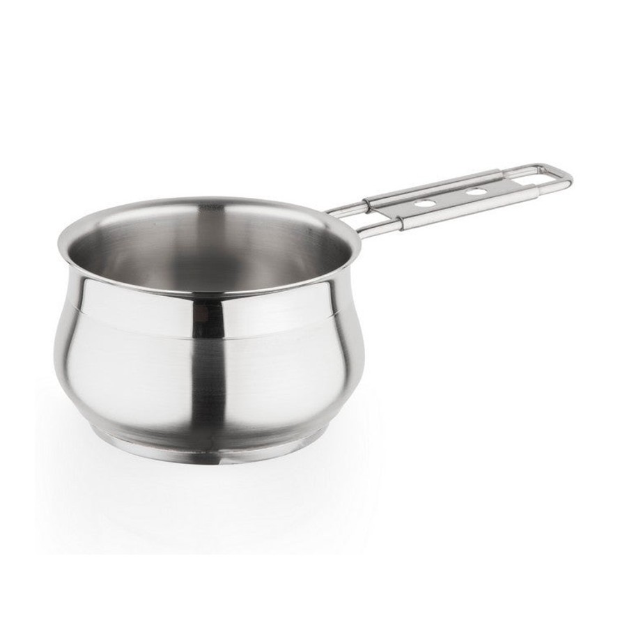 Casseruola Manico Lungo Diametro 12 cm Capienza 0,7 litri. Fondo Triplen a 3 strati: acciaio - alluminio - acciaio. Adatto a tutti i piani di cottura: gas, induzione, elettrico. Utilizzabile in forno. Lavabile in lavastoviglie. Premio compasso d'oro ADI. Design Ennio Lucini. Made in Italy
