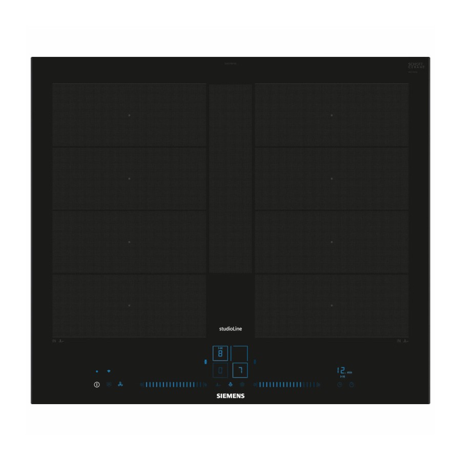 Piano Cottura Induzione 60cm. flexInduction Plus: zona di cottura flessibili e estensibili. fryingSensor Plus: mai più pietanze bruciate. powerBoost: aumenta la potenza di una zona a induzione fino al 50%. Timer con funzione di spegnimento zona di cottura. cookConnect System: la cappa si attiva in automatico quando inizi a cucinare. Home Connect: Un piano cottura intelligente. Comando dual lightSlider led blu. iQ700 Studio Line. Dimensioni (AxLxP): 51 x 602 x 520 mm. Dimensioni incasso (AxLxP) 51 x 560 x 490-500 mm.
