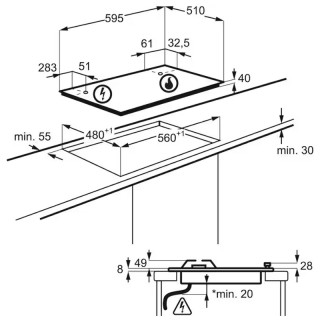 - Dimensioni piano LxP (mm): 594x510