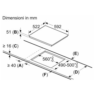 - Dimensioni del vano per l'installazione (AxLxP): 51 x 560 x 490-500 mm
